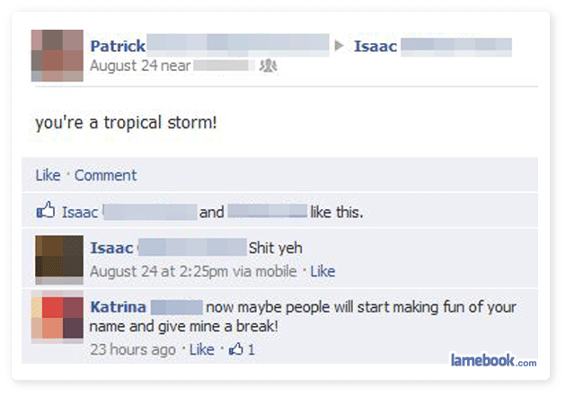 1.) They were/are hurricanes, not tropical storms. Fail.
