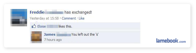 Come on, a ‘girl making a sandwich’ joke? Really? I thought we’d all made it clear they were no longer wins. Get with it lamebook. The ‘s’exhchanged joke was good though, well played James.