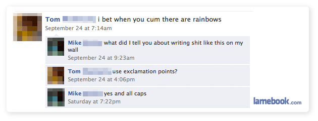 Tom & Mike’s is just weird. Not sure if Mike is the control freak pants-wearer in their gay relationship or if they’re just being stupid. At any rate, these are severely weak. LAMEbook indeed.